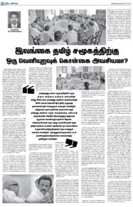 இவ்வாறு சிறு முரண்பாடுகளை உடனுக்குடன் தீர்த்துக் கொள்வதும் உலகத் தமிழராக ஒன்றிணைவதும் அவசியமானது. அதற்கான மைப்புள்ளியை தமிழக முதல்வர் ஸ்டாலினிலிருந்து ஆரம்பிப்பது இலகுவானது. காரணம் ஏற்கனவே இரு சமூகங்களுக்கு இடையிலான நெருக்கடியை அனுபவித்த மற்றும் மத்திய அரசாங்கத்துடன் கையாளுகைப் பலமுடைய தமிழகமும் அதன் தலைமையும் வாய்ப்பான களமாக அமைந்துள்ளது. இதனையும் தவறவிடுதல் அரசியல் சமூகம் என்ற வலுவையும் இழப்பதற்கு ஒப்பானதாக அமைந்துவிடுமா? என்ற சந்தேகத்தை தருகிறது.
