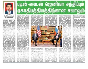 அமெரிக்க ஜனாதிபதி ஜோ பிடனின் ஐரோப்பிய விஜயத்தின் நிறைவு நிகழ்வாக சுவிஸர்லாந்தின் தலைநகரமான ஜெனிவாவில் ரஸ்சிய ஜனாதிபதி விளாடிமீர் புடினோடு சந்தித்ததோடு நிறைவுக்கு வந்தது. மிக நீண்ட முதல் வெளிநாட்டு பயணத்தை அமெரிக்க ஜனாதிபதி தனது மூதாதையர்களின் கண்டமாகிய ஐரோப்பா நோக்கி நகர்ந்திருந்ததோடு மேற்குலகு ஏகாதிபத்தியத்தின் சரிவிலிருந்து மீட்பதற்கான விஜயமாகவே அவரது ஐரோப்பிய பயணம் அமைந்தது. குறிப்பாக ஜி-07, நேட்டோ, ஐரோப்பிய யூனியன் போன்ற ஏகாதிபத்தியங்களின் கூட்டுக்களுக்கான சந்திப்பு அமெரிக்காவின் தலைமையை நிலைநிறுத்துவதோடு ஐரோப்பிய-அமெரிக்க உறுதிப்பாட்டை கட்டமைக்கும் விதத்திலும் அவரது இராஜதந்திர விஜயம் அமைந்திருந்தது. ஆனால் ஜெனிவா மகாநாடு அதில் ரஸ்சிய ஜனாதிபதி புடினது உரையாடல்களின் வெளிப்பாடும் அமெரிக்காவிற்கும் அதன் ஜனாதிபதி ஜோ பிடனுக்கும் சவால்மிக்கது என்பதை உணர்த்துவதற்கான நிகழ்வாக பதிவு செய்யப்பட்டுள்ளது. இக்கட்டுரையும் புடின்-பிடன் சந்திப்பு ஏற்படுத்திய விளைவுகளை தேடுவதாக உள்ளது.